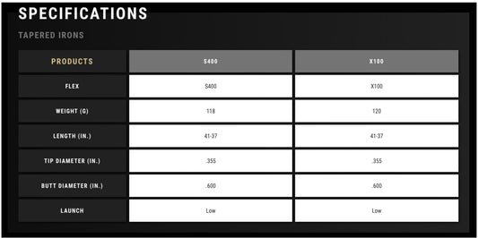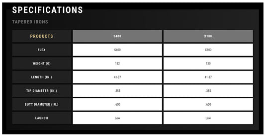 Regular price £49.60 inc VATRegular priceUnit price / per£0.00 inc VATSale price From £49.60 inc VATThis shaft is generally preferred by stronger players that are looking to maintain the overall effort it takes to swing their steel shafted irons but wants to benefit from the vibration dampening characteristics of a composite shaft. We are able to maintain the playability of the 125 gram shaft by minimizing the wall thickness with the use of metal to increase weight instead of adding more graphite. Because graphite is 1/5th the weight of steel it would take 5 times the amount of graphite material for the same weight increase which increases wall thickness and gives the shaft a “boardy” feel. The weights of all of our SteelFiber iron shafts are manipulated using metal and graphite instead of just graphite. This is just one of the things that set the playability of the SteelFiber shafts apart from all its competitors.