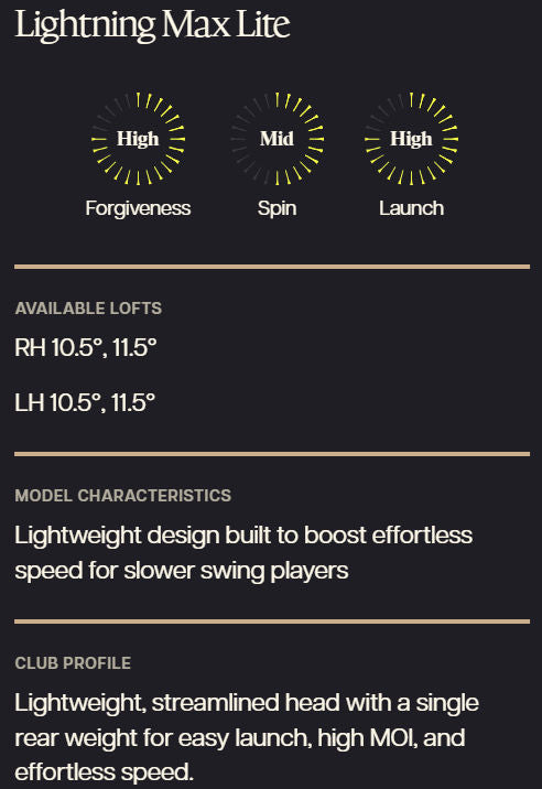 PXG Lightening Max 10K+ Golf Driver PXG Lightning Drivers capture that precise moment of pure energy and transform it into your fastest, most efficient drive yet. Precision-engineered, each model features...