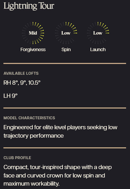 Four distinct head designs to ensure every golfer experiences optimized launch, feel, and forgiveness tailored to their game. Engineered to be custom fit, every detail of the PXG Lightning Driver family was designed for measurable speed gains, maximum forgiveness and incredible sound and feel.