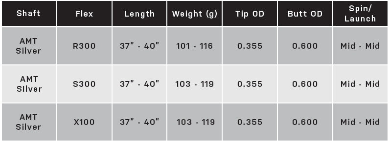 Each model in the AMT family is engineered to fine-tune trajectory, weight, and feel across the set providing a seamless transition in performance.